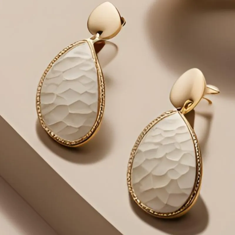 Leur design unique en forme de goutte, rehaussé d’une texture martelée, leur confère un charme exceptionnel. Légères et confortables, elles mesurent 10 cm de long et 5 cm de large, et sont dotées d’un fermoir à crochets pour une tenue sécurisée.
